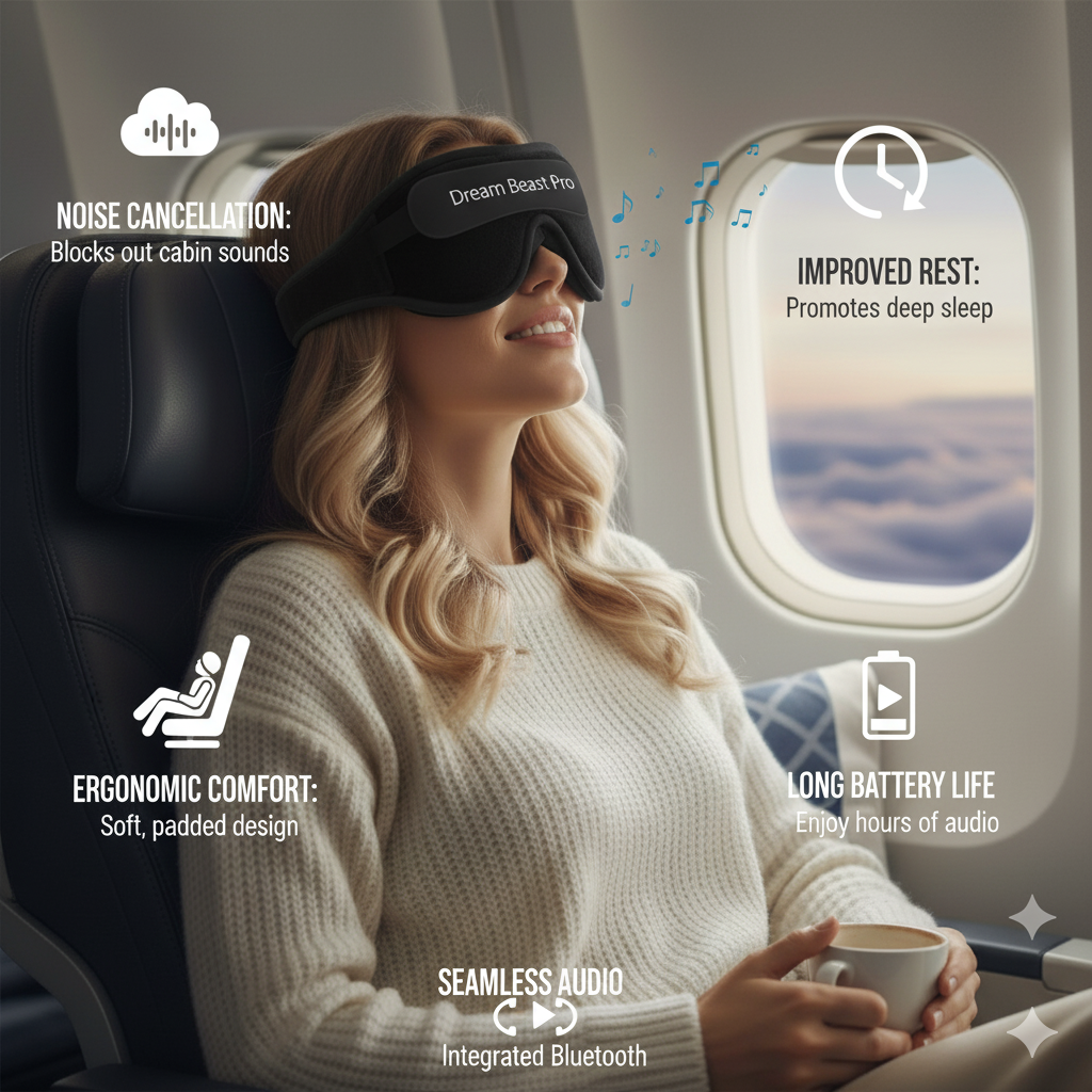 See Dream Beats⢠Snooze Pro in actionāfrom plane cabins to cozy bedrooms. Our breathable, contoured mask adapts to you for uninterrupted, private audio and total darkness.